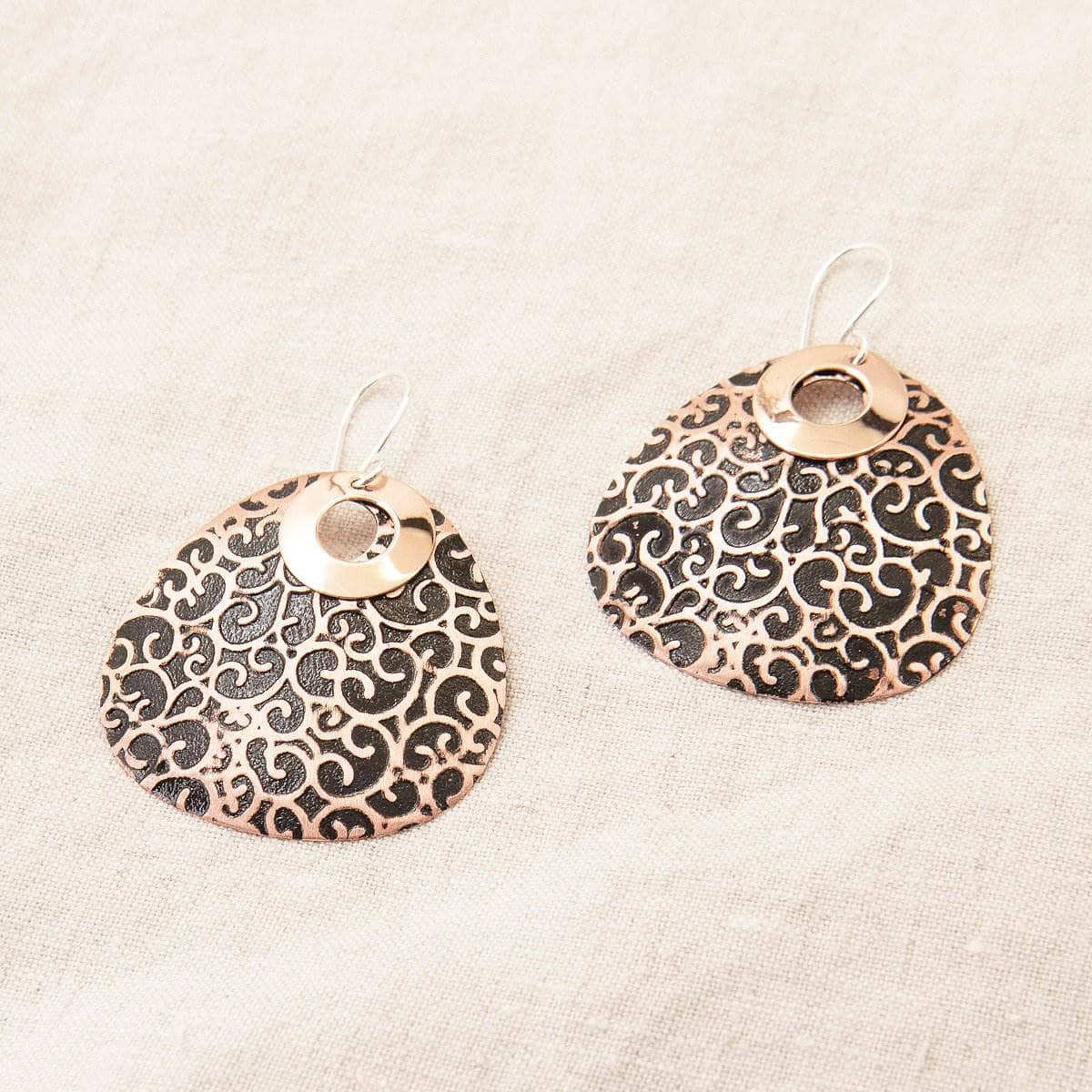 Wearing copper earrings brings all these healing elements to our higher chakras. Earrings sit close to the third eye chakra and the crown. These chakras are the gateways to our intuitive wisdom and our connection with the higher universe. This is exactly what copper is good at – it builds bridges between the astral and the physical. Handmade in Mexico by skilled artisans. these Black Copper Earrings represent growth. balance. and femininity.